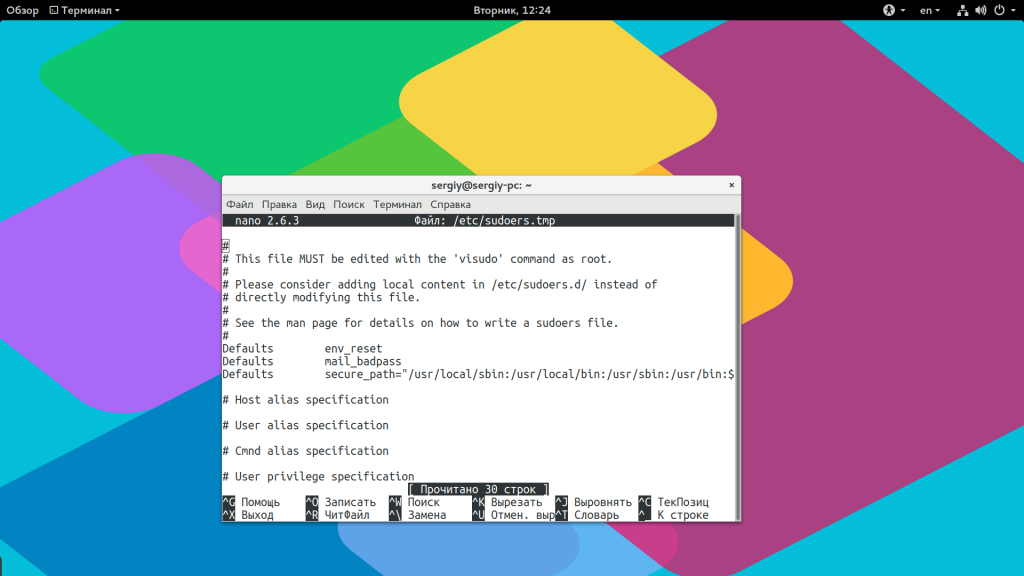 По умолчанию эта команда открывает настройки утилиты sudo в редакторе Vim, но с этой переменной окружения настройки откроются в редакторе nano.