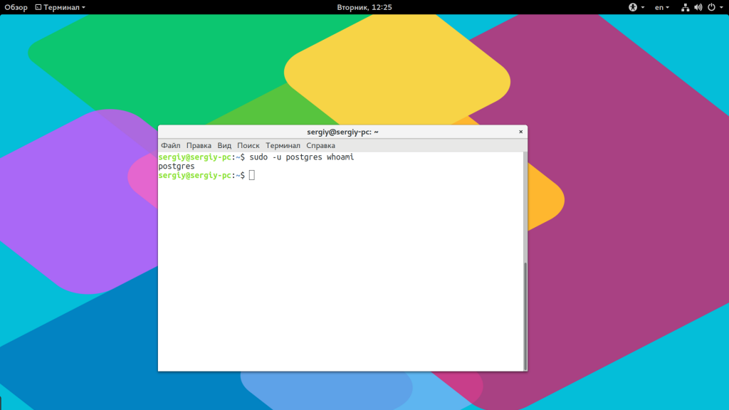 sudo -u имя_пользователя командаsudo -u postgres whoami
