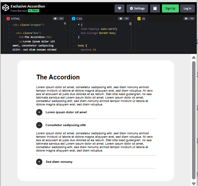 Exclusive Accordion: https://codepen.io/fbernack/pen/ogjXXdj
