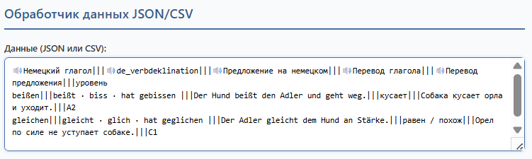 + Вставляем в поле «Данные (JSON или CSV):» на странцу сайта «https://1.cbm.ua/?page_id=9116» или локально «index.html» который находиться в папке